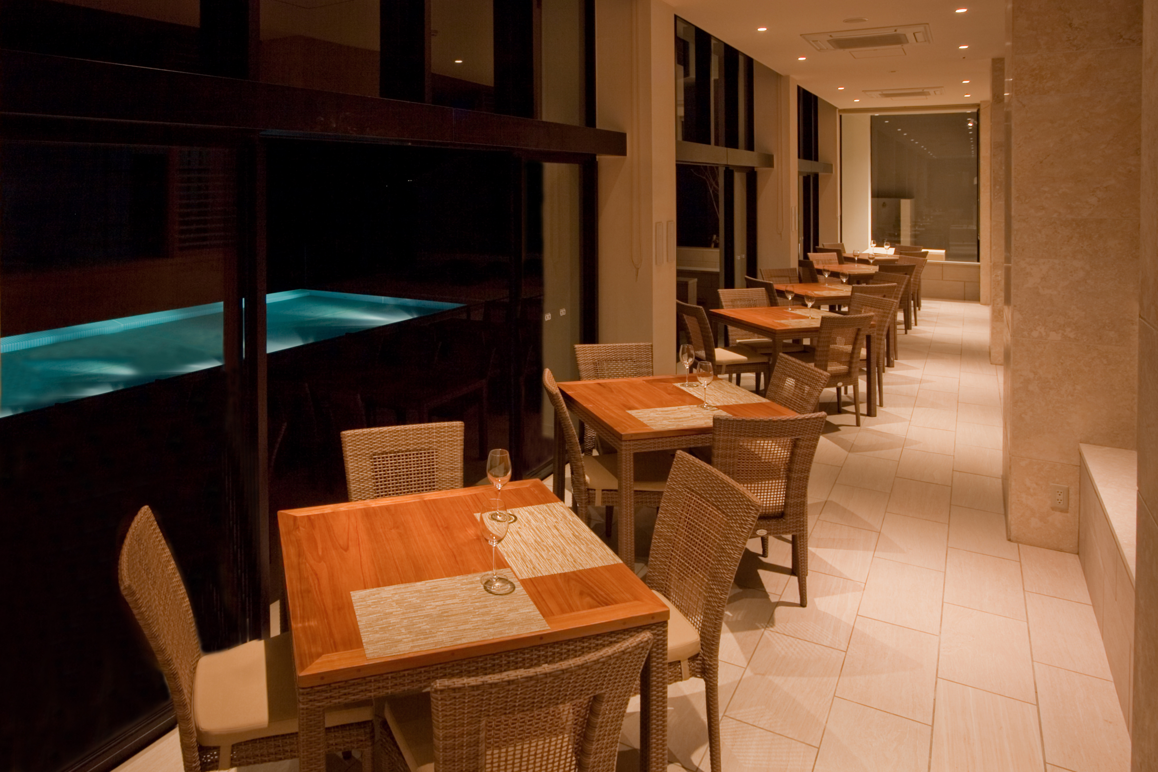 瀬長ブルーを眺望できるフロアには、琉球らしいゆったりとした時間が流れています。ランチタイムには雄大な空と海を見渡しながら、シェフが趣向を凝らした料理ををお楽しみください。日没時には、夕日に染まったテラス席で素敵なディナータイムを演出します。当店は鉄板焼きにこだわりを持っており、食材にはブランド豚のアグーや近海で獲れた海の幸などを贅沢に使用しております。ぜひ当店で極上の料理と景色をお楽しみください。