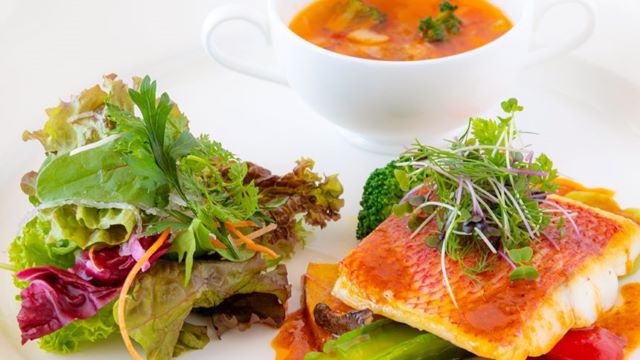 吹き抜けのリゾート感あふれる開放的な洋食レストラン