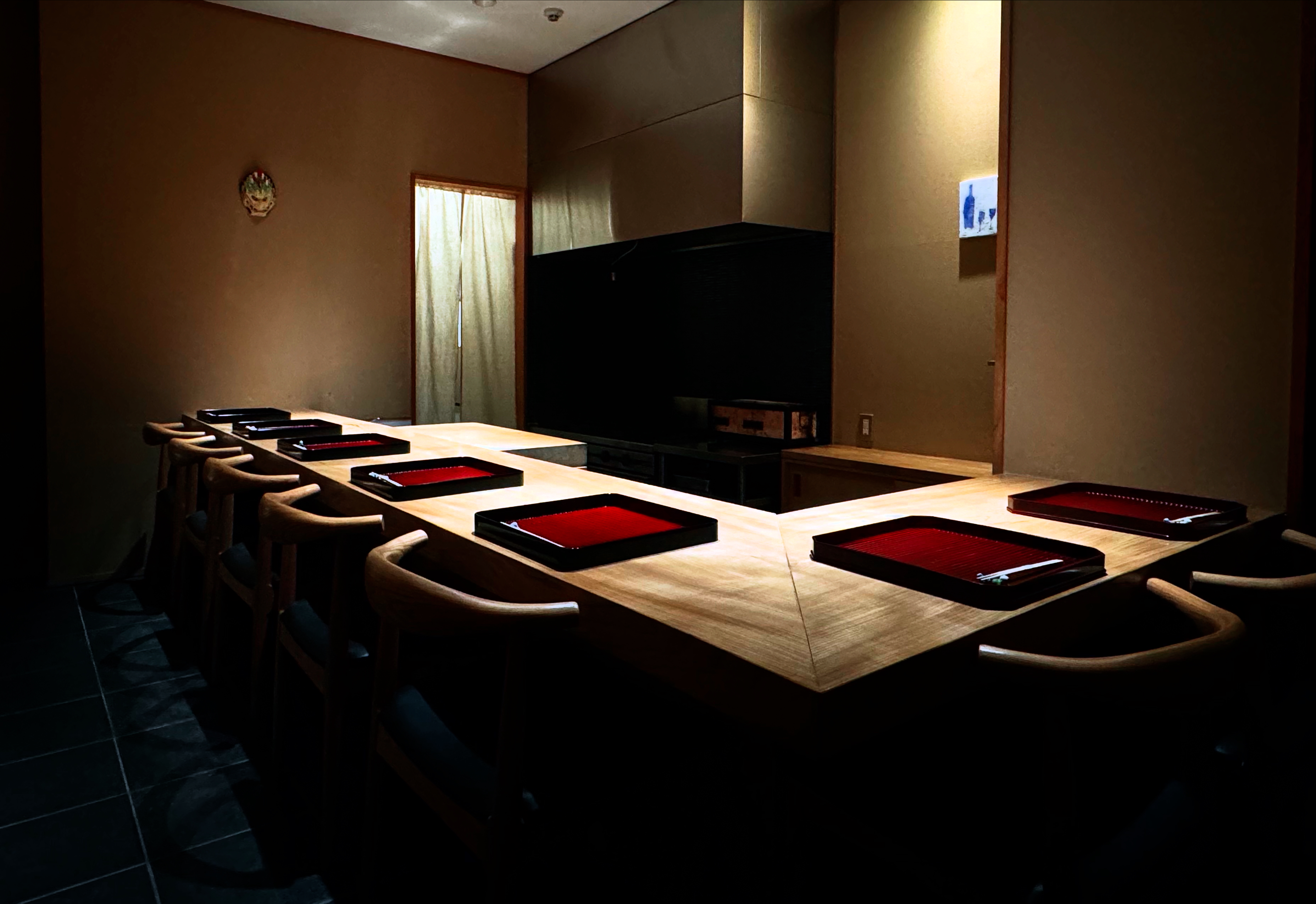 黒で引き締められたシックな店内 落ち着いた雰囲気で 熟練の「串焼き師」焼き上げる串をご堪能下さい。