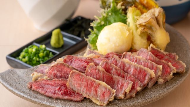 江戸時代から花街として栄え、料亭や置屋、和菓子店が多く軒を連ねる東京の花街・向島にある【江戸蕎麦僖蕎】。主役は、茨城県産の玄そばの最高峰と言われる「常陸秋そば」を使用した、豊かな風味とコシのある自家製九一そばです。和の職人が丹精込めてつくる、季節素材を盛り込んだ八寸や天ぷらなどの一品料理も脇役を超える素晴らしさ。ランチではそばと天ぷらや前菜なども楽しめるセットメニュー、夜は旬素材でつくるそば前と共に、各地から選りすぐった日本酒との絶妙なペアリングが楽しめます。東京のモダンと粋を感じる洗練された店内には、カウンターやテーブル席のほか、2階には個室もあるので、接待などにも利用できます。