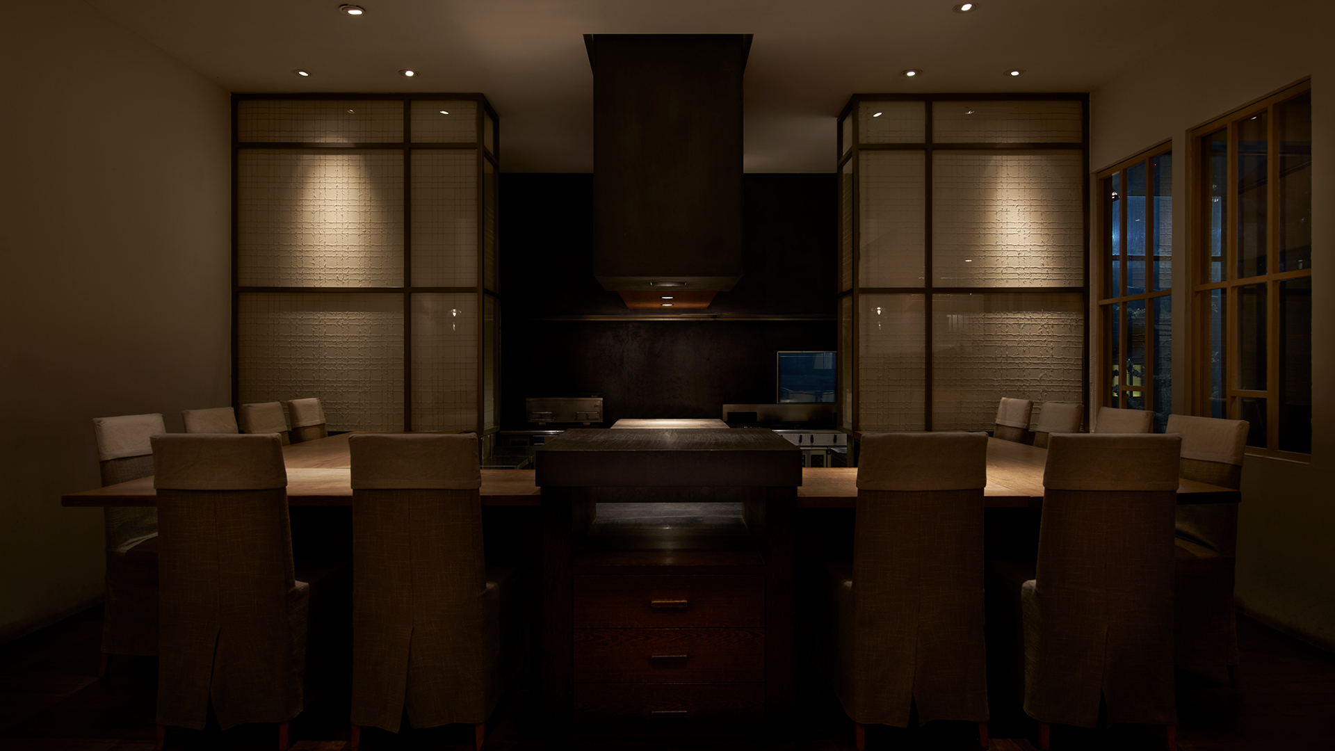 目の前で料理人が調理してくれるライブ感を楽しみながら、ステーキや新鮮な魚介、季節の野菜を味わえる【鉄板焼たまゆら】。経験豊富な料理人たちが、五感で満喫できる料理を提供しています。リゾートをテーマにした店内は、時間がゆったりと流れているようなくつろげる雰囲気。大切なデートや記念日、重要な接待や会食など、特別なひとときを過ごすのにオススメです。個室席には大型テレビも設置されており、会議やスポーツ観戦も可能。また、個室席だけでなくカウンター席も用意されているので、一人でも気軽に立ち寄ることができます。中目黒駅から徒歩1分という、アクセス良好な立地の3階にあるお店です。