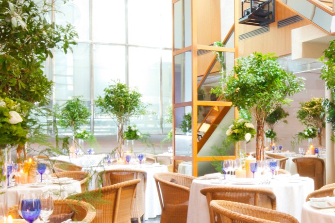 JR飯田橋駅のすぐ脇にある【CANAL CAFE】は、四季折々の自然とともに料理やお酒が味わえるカフェレストラン。店内はセルフサービスのデッキとレストランとに分かれ、それぞれに異なる過ごし方が楽しめます。現地で修業を積んだ原衛シェフが、契約農家から仕入れた野菜や産直の肉を使用してつくるのは、イタリアンをベースにした料理の数々。トリッパにローズマリーやレモンピールなどのハーブをたっぷりと加え、ピリ辛のトマトソースで煮込んだ、香り豊かなパスタ『トリッパのアラビアータ』や、素材の旨みを引き出した『ムール貝の白ワイン蒸し』などが豊富に並びます。料理やワインで陽気なひとときを満喫してみてはいかがですか。