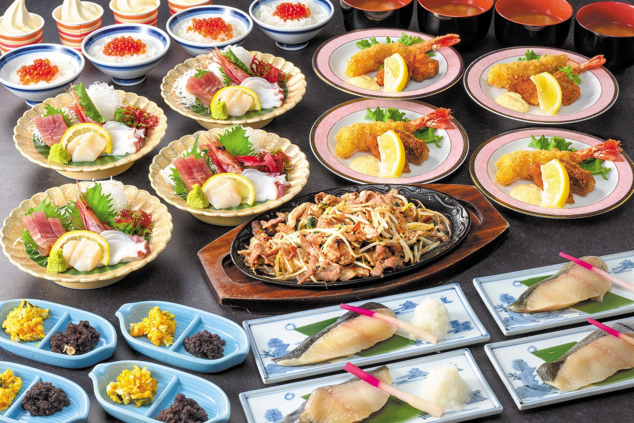 北海道産牛を用いた料理3種や 新鮮で、ホッキ・帆立・つぶで貝3点盛り合わせ等 ボリューム満点なお刺身など 海鮮丼など充実。 帆立のバター醤油焼きは絶品です。 北海道の美味を味わうメニューが多彩◎