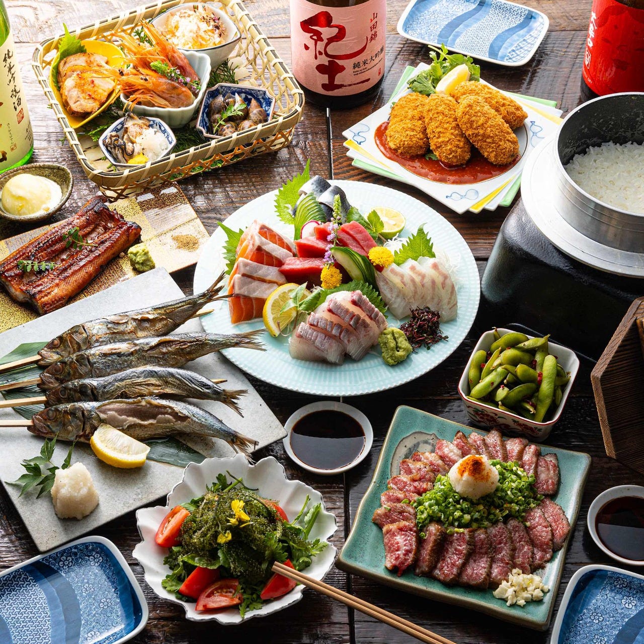 刺身や濱焼などご堪能いただけます お食事会やご宴会などにおすすめ! お席のご相談・ご予約承り中