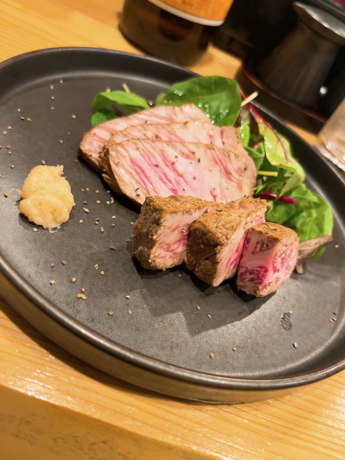 「本マグロ」の握りはもちろん、ステーキも美味。長原駅近くのアットホームな寿司店