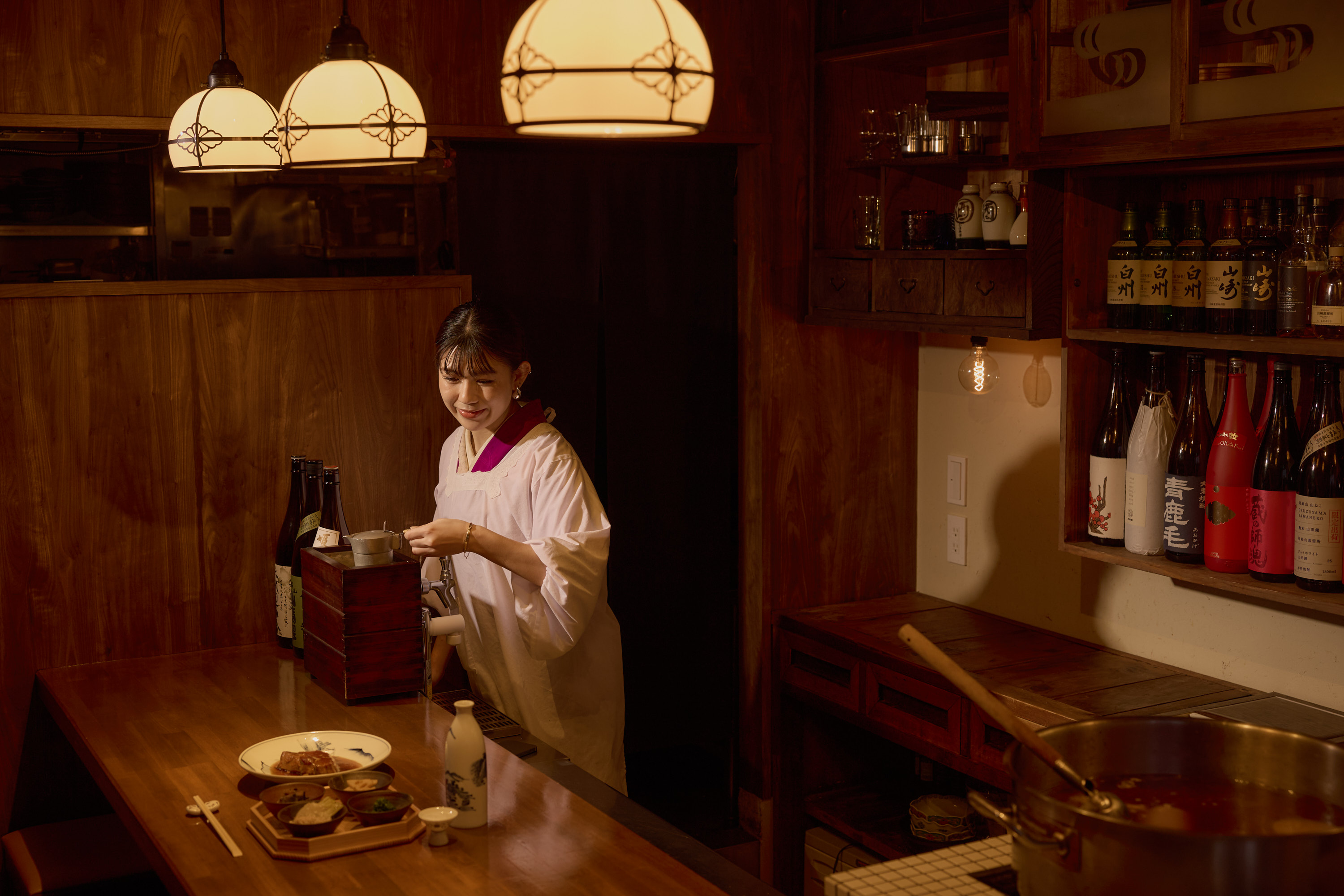 東京の下町、深川門前仲町にひっそりと佇む酒場です。カウンター10席、4名がけテーブル2席のこじんまりとした店内。四季で変わる旬のお酒とお料理をごゆっくりとお楽しみ頂けます。
