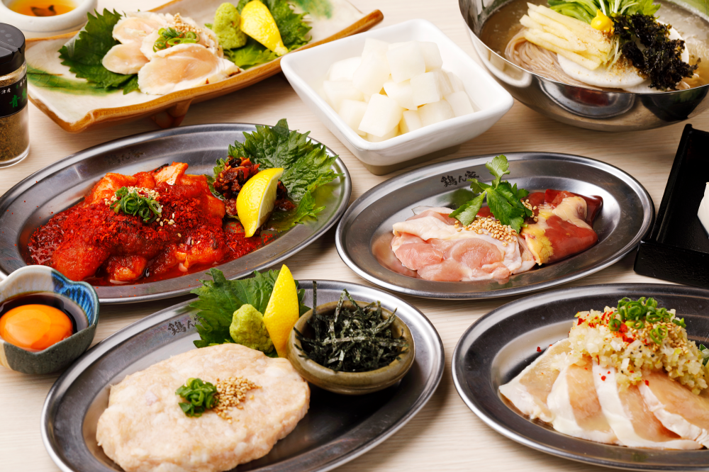 ★プレミアムコース★人気のぢどりもも炭火焼きや自家製モツ鍋 全8品を堪能【 2時間飲み放題付 】