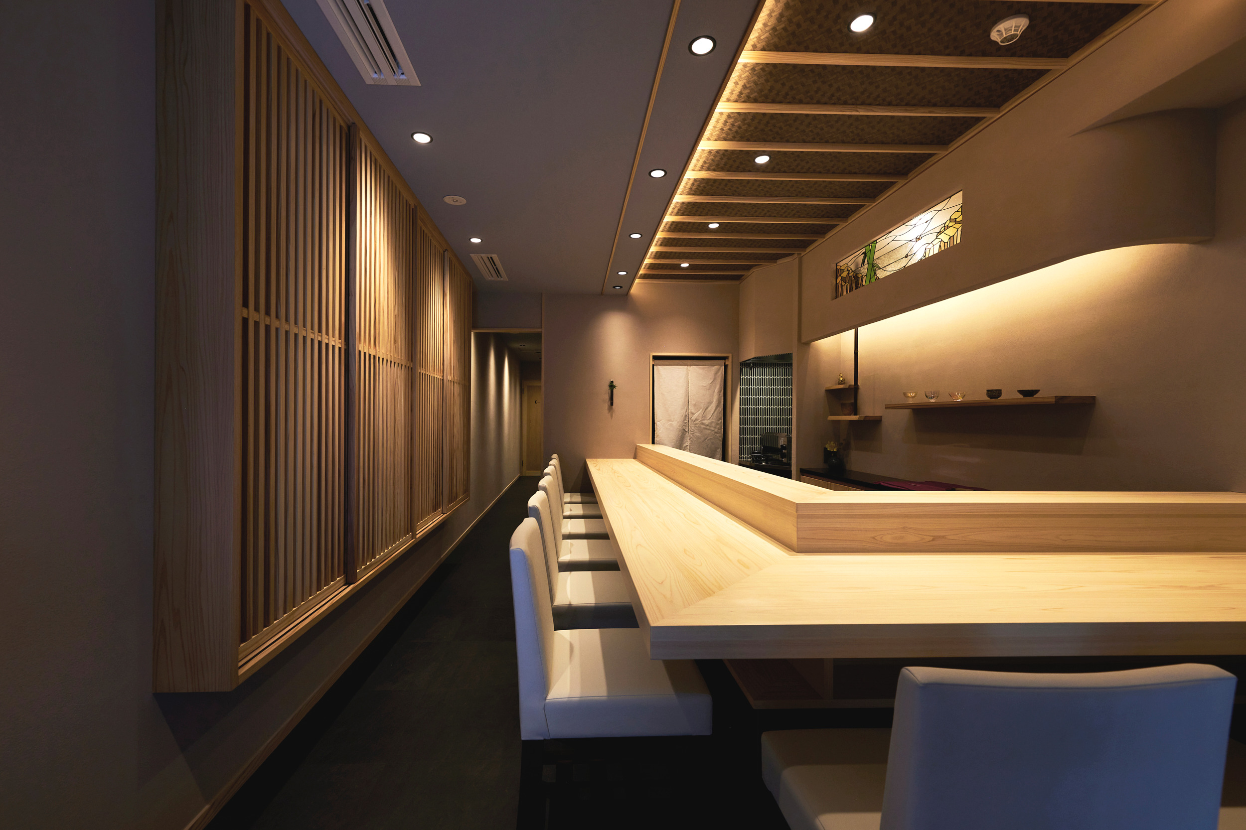 カウンター9席と完全個室(最大6名・2~5名様推奨)の鮨店でございます。店主の出身である伊豆と全国から仕入れた旬の食材をゆったりとお楽しみ下さいませ。