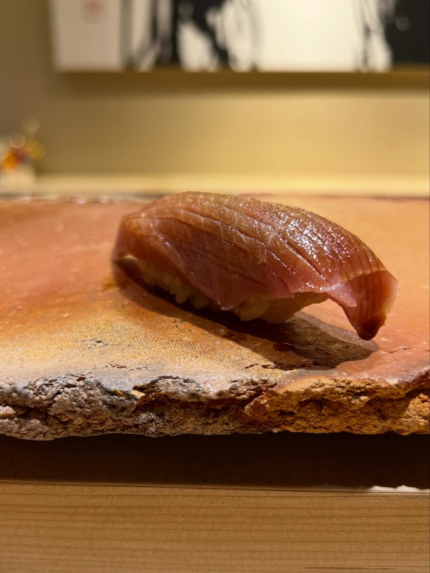 鮨好きには言わずと知れた星付き店で修業を重ね、広尾の名店【鮨 在】の個室カウンターをまかされた阿重田博紀さんが独立。グルメの聖地・奥渋谷に店を開いた。隠れ家を彷彿とさせる入口から一歩足を踏み入れると、そこはミシュランの二つ星に輝くフレンチレストランも手がけたデザイナーによるスタイリッシュな空間。檜と御影石のコントラストが凛として、美しい。最たるこだわりは、阿重田さんの妥協なき姿勢。毎朝、いち早く豊洲に到着し、極上の素材を仕入れ、幻の米と言われる「美濃ハツシモ」を使ったシャリとともに最高の鮨を握る。ソムリエが提案する斬新なアルコールペアリングやノンアルコールペアリングとともに多幸感に包まれたい。