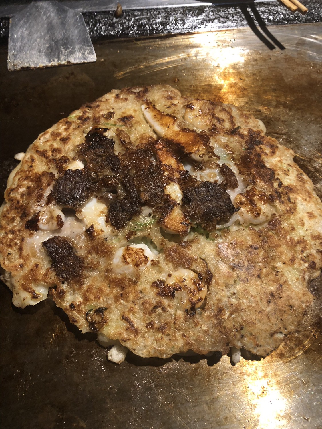 神戸といえば、神戸牛、そば飯、ぼっかけ! カップルから家族連れ、会社帰りの方など幅広く利用できる気軽なお店。シェフ技を堪能できるカウンターとテーブルで24名。神戸観光、忘年会、飲み会に! ☆空海オリジナルお好み焼きはキャベツたっぷりヘルシー!低カロリーでおすすめ ☆5種類の粉をブレンドした生地、果実入りこだわりオリジナルソース ☆鉄板で一つ一つ焼き上げる本格ステーキ・海鮮など鉄板焼メニュー豊富