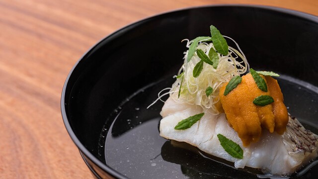 新鮮食材を調理し、五感で味わえる懐石・会席料理でもてなす《即今 藤本》。 市中の山居の如く、露地を入り出るまでの間、御料理はもちろん、 しつらえ・器・おもてなしとすべてを満足して頂けるよう、粋な空間が広がります。 四季折々の食材を盛り込み、端正に作りこまれた料理の数々をコースでお楽しみいただけます。 カウンターのテーブルは、畳を使った特注品。 茶道具や掛け軸などをあしらった店内には、茶室を思わせてくれる個室もあります。 まるでお茶室のような雰囲気の中で、濃密なひと時をお過ごしいただけます。 日本料理の美しさを伝える料理はまさに芸術。 季節感を十分に楽しませてくれる料理と空間で、日本の魅力を再発見できることでしょう。