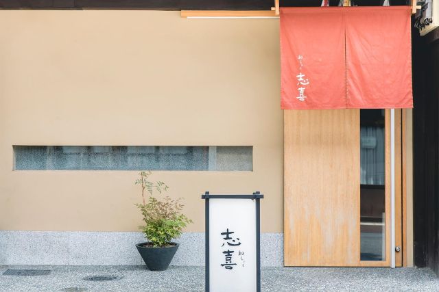 宮澤政人氏率いる【じき】で感銘を受けた泉貴友氏が、直接宮澤氏に交渉、弟子入りして、一つ星を獲得するほどになった日本料理の名店です。食材は、なるべく天然ものにこだわる泉氏から繰り出されるお皿は、『焼物』や『お造り』等、季節を感じる逸品ぞろい。三重の尾鷲産ボラを使った色鮮やかな『自家製カラスミ』、上質の葛を長時間練り、使用する調味料は塩とはちみつのみという名物『焼胡麻豆腐』など、丁寧につくられる本格京料理を堪能できます。四条駅から歩いて2分、石畳の細い小路を通り抜けると見えてくる、上品な藍色の暖簾が目印。緑を望むカウンター席で、目の前で丹念に仕上げられてゆく料理を、ゆったりと心地よく味わえます。