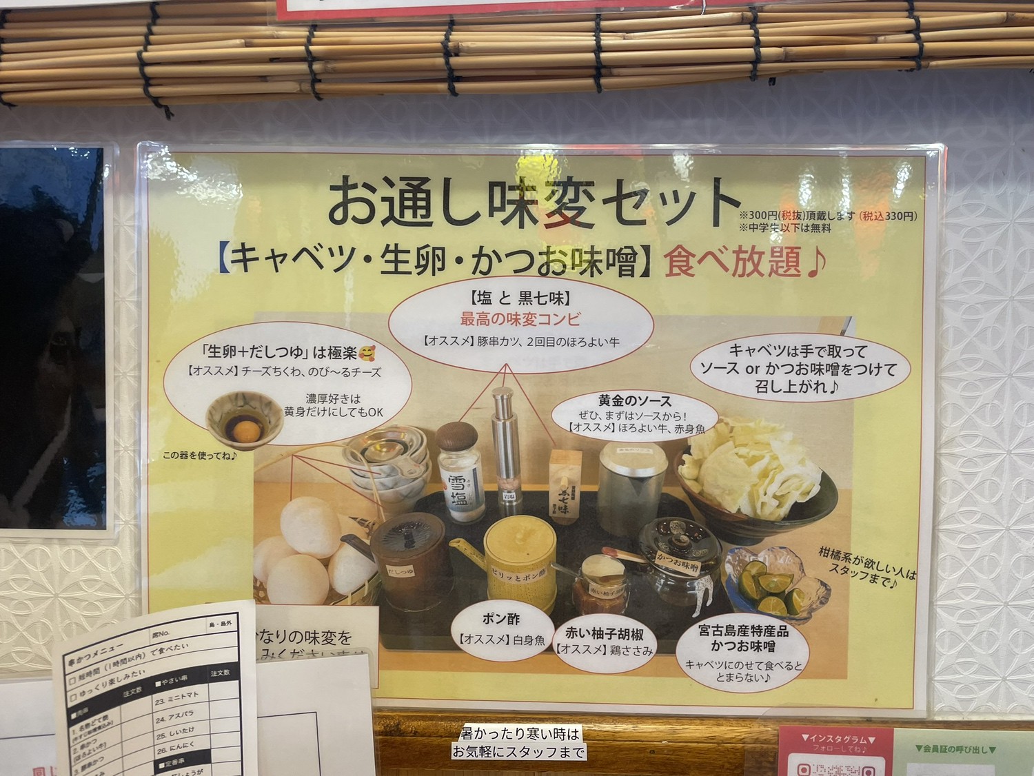 看板メニューは、魔法の食感の「宮古生麺」を使った焼きそば! 鉄板で焼き上げることで、外は香ばしく中は驚くほどモチモチに◎ 本場大阪の技が光るお好み焼きは、大阪仕込みの鉄板技術をベースに、 地元食材をミックス。キャベツをふんだんに使い、ふわっふわに焼き上げます! 他にも、宮古牛リブステーキや伊良部島産の鮮魚など、厳選した島食材をご用意。 目の前で炎が上がる「炎上ステーキ」など、視覚でも楽しめる演出が盛りだくさん! 食事の場を超えた、宮古島旅行の思い出に残るエンターテインメント体験を提供します。 島の親戚の家に遊びに来たような、どこか懐かしく温かい空間。 広々とした掘りごたつのお席は、家族連れや友人同士と♪ 賑やかに大皿料理を囲めば、宮古島の夜がさらに深い思い出へと変わります。