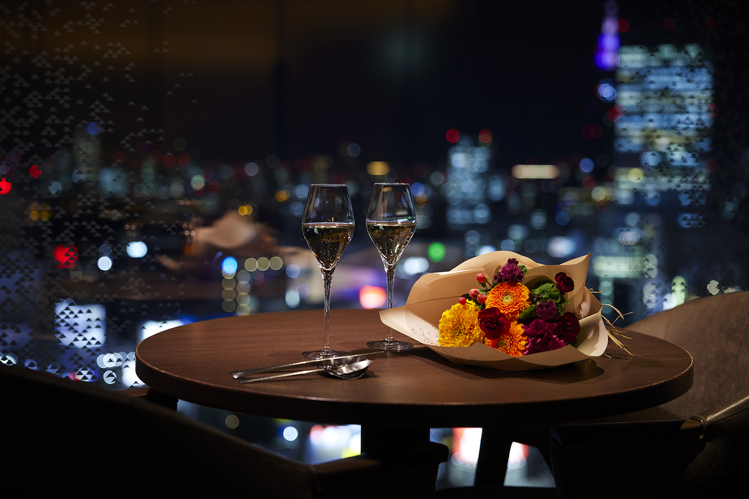 【新宿三丁目駅1分】 4Fの夜景を独占する隠れ家ビストロ。 銘柄肉と30種ボトルワインで特別な夜を演出します。 各種宴会も受付可能、飲み放題付きコース4500円~