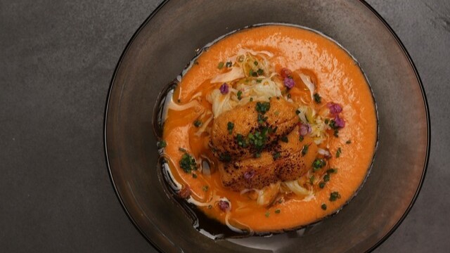 ハードなバリュー戦争時代に突入したと言われる関西フレンチ界。「バリュー&ボリューム」の新時代を拓いた、畏敬すべきこちらは福島の誉れだ。圧巻の武闘派ボリュームと神業級ビネガー使いは健在。大西敏雅シェフは最近、再度パリを巡礼。バスクの怪スパイス「デスペレット」など現地で仕入れた新兵器が早くも活躍。バスク食材の活用においても、先駆的存在だ。バスク豚の皮付き煮込み・豚の頭で炊いた野菜添えは巨塊肉で旨さ倍。たまらん。