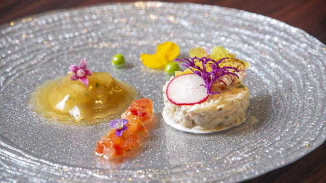 北海道の極上素材を使った王道フレンチとしてミシュランの評価も得てきた【lien】の木下雄介氏が、独立10年の節目に東京への移転を決意。【KINO_】と自らの名前を冠してスタートを切りました。「今まで培ってきた経験や生産者など人とのつながりの中で食材も味も“これが好き”という僕ならではの表現をしていきたい」と新たな意気込みで生み出す料理は、インパクトはありながらも海や大地の滋味に溢れた優しい味わい。郷土料理のイカ飯をウニのリゾットでアレンジした料理やお刺身を意識した前菜、鬼鯵のフライなど誰もが虜になるに違いありません。日本人の味覚に寄り添う料理に合わせ、日本酒や国産ワインでのペアリングも提案してくれます。