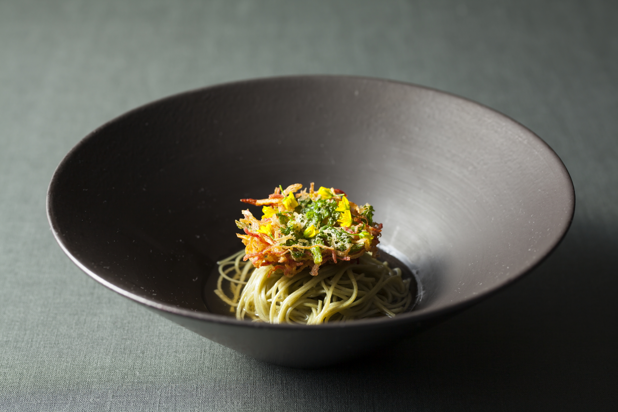 フランス語で“様々なものに光を照らす者たち”の意味を持つ瀟洒なグランメゾンが代官山にオープン。オーナーシェフは、白金高輪のパティスリー&フレンチレストラン【リーブル】で奇才を発揮した田熊一衛氏。今回は、それまでのクリエイティヴな皿はそのままに、最も原始的な調理法の薪焼きに挑戦。フランスや北欧で研鑽を積んだそのスキルを活かし、モダンフレンチと薪の融合という唯一無二の料理をつくっています。全12品の少量多皿コースでは、肉はもとより魚介類も薪火で調理。素材に応じて炎からの高さや置く場所などを変え、温度を巧みにコントロールするのがポイント。ワイルドでありながら精緻な味わいの料理です。