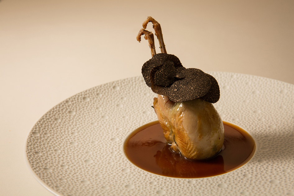 都会の喧騒を通り抜けるとふと現れるフランス風の気品ある一軒家レストラン【ソンブルイユ】。2007年【エメ・ヴィベール】にてミシュラン2つ星を獲得後、7年連続星を得続けた若月氏がエグゼクティブシェフに就任。2017年7月にオープンしたガストロノミーの世界観を味わえるフランス料理店です。スペシャリテの一つ『鴨のフォワグラのコンフィ』は華やかに彩られ、フォワグラのしっとり滑らかな奥深さを感じさせてくれる極上の逸品。それは料理という名の芸術作品として食する人の心を魅了していきます。アンティークの調度品、リモージュの磁器やクリストフルの銀器を使用し、本物を知る大人が料理を慈しむように穏やかなひとときを過ごせます。