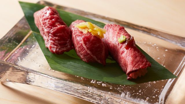 もともと和牛の生産者だった店主が全国の牧場を巡り、惚れた生産者から厳選して仕入れる和牛を生かした、絶品の焼肉を堪能できます。「霜降りの和牛は脂っこい」という概念を覆すべく、鳥取県の万葉牛の骨付きのサーロイン『和牛Lボーン』などを味わえる、肉の良さを最大限に生かした3つのコースを用意。精肉店などを飛ばし、牧場から直接届く肉を店主自ら加工するため、旨味を落とさず、コストも抑えられています。また、「牧場から仕入れたお肉が、お客様の口に入るまでが焼肉店」という思いから、熟練した焼き師が全ての肉を目の前で焼き上げてくれるのも魅力的。個室も備える黒を基調とした落ち着いた空間で、贅沢な時間を過ごせます。