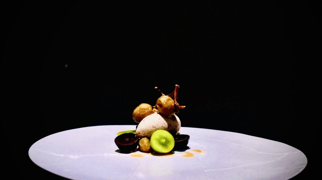 和魂洋才を旨としたイノべーティブフュージョンと薪焼きをコンセプトにしたハイブリッドレストラン。四季を彩る日本の食材を用いつつ、確かなフレンチの技法を用いて新たな食シーンを目指すのは、フランスでの修業を始め多彩な経験を持つ鈴木昌嗣シェフ39歳だ。全11皿からなるおまかせコースでは、薪火で炙った鮪やステックアッシェが登場するかと思えば、炭火で焼いた魚を吟醸酒粕ソースと共に提供するなど緩急自在。舌を飽きさせない。中でもクリミの薪焼きは、運動量の高い肩肉の部位ならではの凝縮感のある肉の旨みとBMS12の黒毛和牛に特化すればこその潤沢なサシとのバランスが絶妙。薪の薫香を纏ったジューシーな味わいのスペシャリテだ。