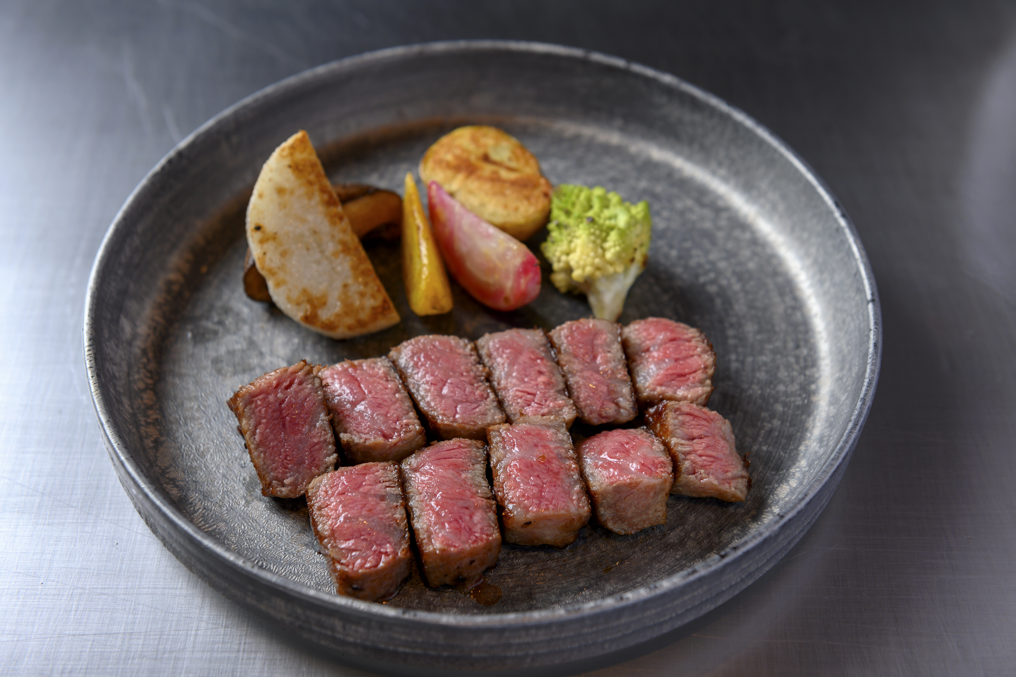 コンセプトは「小樽旅情を感じながら、北海道産の新鮮食材を特別なアレンジで堪能できる、大人のための空間」。目の前で豪快に焼き上げる和牛、“食材の宝庫”・北海道の新鮮野菜など北の美食を集め、グランドパーク小樽ならではの心を込めた鉄板料理としてお届けするディナーコースをご用意しております。大切な方との素敵な時間、大事なお客様の接待など、幅広いシーンにご利用いただけます。