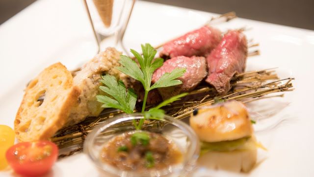 豊かな自然が育む、「食」 歴史風土や美意識が生んだ、「工芸」 「和」の素晴らしさを五感で体感いただける空間を目指しています 料理人が焼き上げる旬の食に、職人の珠玉の作品をとりあわせる。 食と工芸が織りなす「和」の世界に、心が満たされ「和む」時間を・・ コースはランチ・ディナーともに9,500円~ アラカルトのステーキは4,500円~ お召し上がりいただけます。