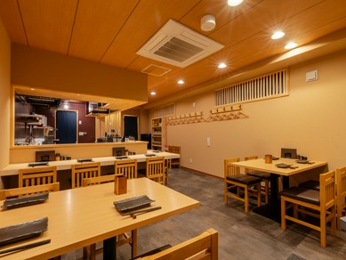 一串ずつ手差しで仕込んだ焼鳥と、鰹から引いた出汁がベースとなる和食。焼鳥と和食の経験を持つ料理人が、それぞれの良い部分を拾い集めながらこだわりの逸品料理へと昇華。手ごねによる『塩つくね』は比内地鶏のおいしさを最大限まで引き出し、『比内地鶏の炊き込みご飯』は濃厚な比内地鶏の旨みに負けない出汁で炊き上げた絶品へと仕上げられています。日本酒は比内地鶏に寄り添うお酒を中心に女将がセレクト。常時20~30種類を揃えています。お一人様から接待、友人との食事会などさまざまな用途に利用できるよう、店内にはカウンター席の他に半個室を設置。落ち着いた雰囲気の中、焼鳥をじっくり堪能したい方にふさわしい空間が広がります。
