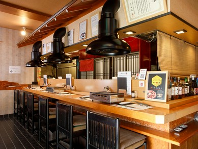 カウンター広めのモダンな店内で、ゆったりといただくこだわりの串焼き料理
