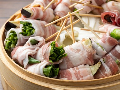 落ち着いた雰囲気の中で楽しむ、彩り豊かな野菜巻き串。【野菜巻キ串 JO ~蒸~】は、新鮮な野菜を豚肉で巻いた、野菜巻き串の専門店。蒸篭で蒸し上げたヘルシーな巻き串は、見た目も楽しく、味わいも軽やか。女性層を中心に、幅広い客層の支持を集めています。香ばしく焼き上げた串焼き・焼き鳥をはじめ、一品料理も多数。ドリンクも飲みやすいもの・厳選焼酎など、料理と相性の良いドリンクを中心に充実しています。ジャズの流れる洗練された店内は、一人飲みから女子会、カジュアルな食事会までシーンに対応。翌4時まで営業していることもあり、二軒目以降や〆としてもオススメです。お一人様で、仲間同士で。気軽に立ち寄れるお店です。