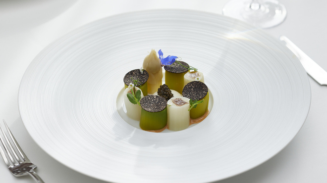 フランス語での「時間を超越した、永遠不変」の意味を持つ【l’intemporel(ランタンポレル)】は、“変わらぬおいしさ”を届け続けるレストラン。流行にとらわれず、伝統的な料理に独自のエッセンスを加えた、シェフおまかせのコースを味わえるお店です。シェフが自信を持って薦める生産者たちの野菜や、厳選された肉・魚など食材の仕入れからこだわり、シンプルな調理法で食材の持つおいしさを引き出した料理を提供しています。料理に合わせてソムリエが吟味したワインも自慢で、フランス産を中心に約400種類を取り揃え。ゲストに向けたオススメの一本の提案も可能です。デートや接待など、さまざまなシーンに寄り添ってくれる一軒です。