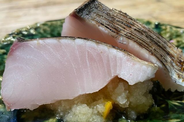 主に金沢から仕入れる鮮魚や、自然栽培のお野菜を使用したおばんざいなどを愉しめる【割烹本山サカナ】。照明を少し落とした店内は、心地良くジャズが流れる落ち着いた雰囲気の大人の和空間。普段の食事や大切な人を連れていくのにもぴったり。5~6種類の刺盛に焼魚や煮物も付いた昼会席やのどぐろなどの高級食材も堪能できる特別な夜のコースなど、宴会プランも各種ご用意。「金沢の魚を金沢の醤油で食べる」がコンセプトのお刺身は必食です。 インボイス登録店舗でございます