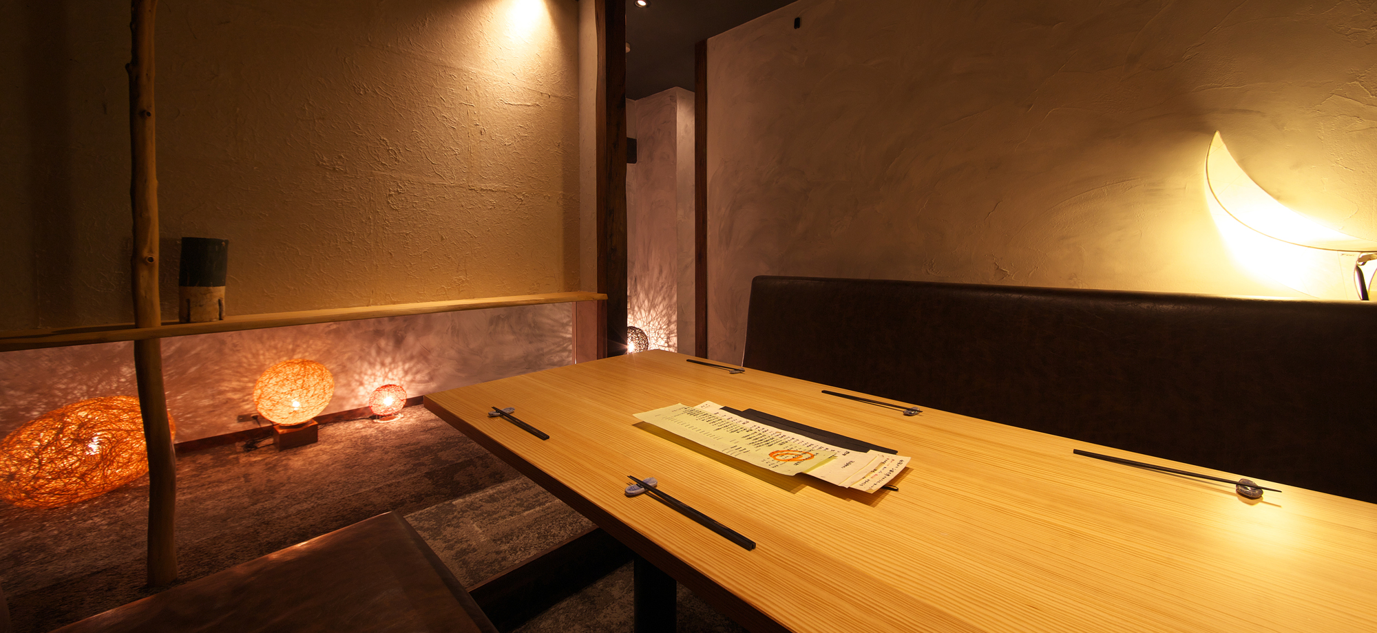 旨い料理と酒を目当てに、気軽にふらりと立ち寄れる、そんなのんびりとした雰囲気が嬉しい【まるこ食堂】。新鮮魚介や牛タンを使った逸品料理や、本場ご当地の名古屋めしが存分に満喫できます。薄切りの牛タンを昆布出汁にサッとくぐらせ、レモン塩で食す『牛タンしゃぶしゃぶ』はさっぱりとした味わいのヘルシー鍋です。気まぐれ店主の気まぐれ料理とプレミアムな日本酒に舌鼓、厨房越しのカウンター席は1人でも落ち着いて料理が楽しめる特等席です。好みの料理が選べる飲み放題付きの宴会コースは、10名以上で貸し切りの利用が可能、酒肴や鍋料理を囲みゆったり酒を味わえば、ほっこりとしたあたたかい気分に浸れます。