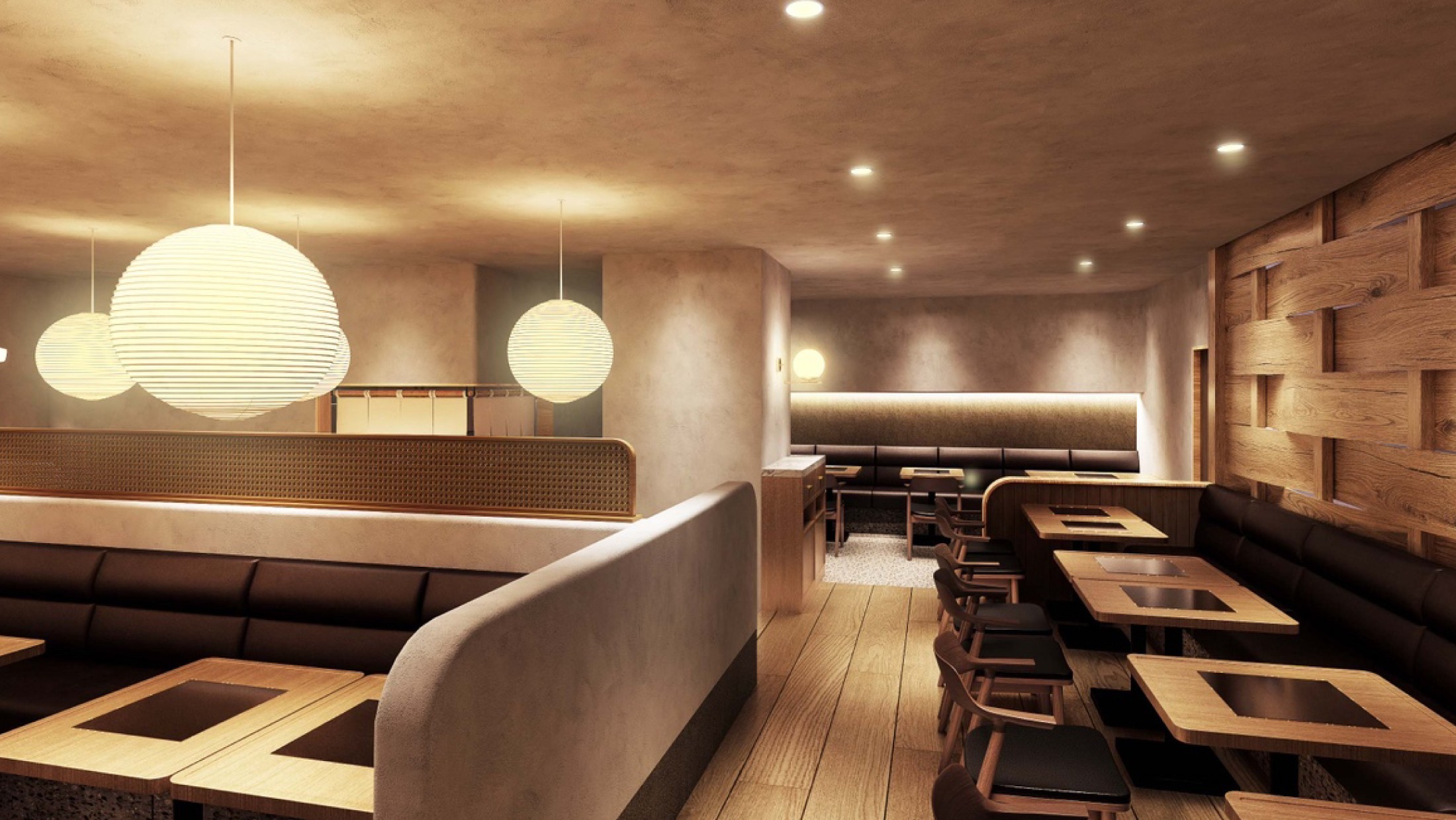 階段を下りると広がるくつろぎの和モダンな空間は、炭火焼きが自慢の隠れ家的居酒屋