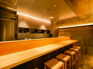 関内駅から徒歩3分。蒼のモダンな建物に、木目とガラスの扉が印象的な一軒【和味 志元】。横浜・銀座の名店で研鑽を重ねた料理人による、堅苦しさのない和食を楽しめるお店です。店主自ら豊洲・横浜で目利きした鮮魚をはじめ、選りすぐりの旬の食材を用意。季節の料理に合わせて選び抜いた日本酒や、自然派ワイン好きの店主ならではの目線でセレクトしたワインなど、お酒も珠玉の一本を取り揃えています。店内は落ち着いた雰囲気の全14席。一枚板のカウンターを中心に落ち着いた印象に纏められており、リラックスして食事を楽しめそうです。カウンター越しに調理の光景を眺めることもでき、臨場感ある演出は接待や記念日使いにも最適です。