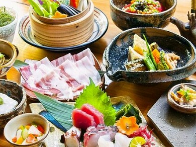 沖縄の食材・旬の県産食材をふんだんに使った沖縄創作料理をご提供。 和食とイタリアンで修行を積んだ料理長が腕によりをかけて手作りしております。 古酒をメインに揃えた泡盛のラインナップも魅力の1つです。 ■おすすめコース ・その日仕入れた食材でおもてなしする「歓送迎会5,000円(税込)コース」 多種多彩なドリンクが揃う単品飲み放題は2,000円(税込)からお付けできます。 ■一押しメニュー ・自家製ラフテーと沖縄生そばパスタを使用「ラフテーとフーチバーのそばパスタ」 ・手ごねで丁寧に作るふんわり食感の逸品「やんばる鶏自家製つくね」 ・ジューシーで甘みある味わい「キビまる豚ロースステーキ」 上質な和の趣を纏う店内は、落ち着いた大人の空間。 12名様までご利用可能な個室も備えるほか、最大30名様まで貸切宴会も可能です。