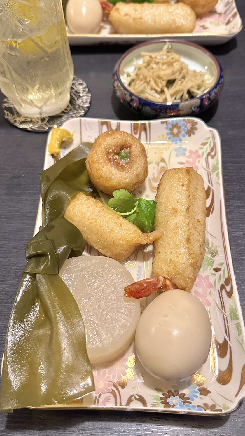 ◆受け継がれた秘伝の味 先代から受け継いだおでんは、だしの風味豊かでどこか懐かしさを感じる優しい味わい。 テイクアウトも可能です!ご自宅でもお店の味をお楽しみいただけます。 ◆お酒に合う逸品料理も 自慢のおでんの他にも、お酒に合う逸品を豊富にご用意しております。 低カロリーなとりの刺身とわさび醤油の相性が抜群な「薩摩鶏のむね肉のとりわさ」や ふわふわ食感がたまらない「かね久のだし巻きたまご」などどれもイチオシ! ◆ふらっと気軽に立ち寄れる雰囲気 お仕事帰りにちょっと一杯飲みたい時や、おでんが食べたくなった時にふらっと立ち寄れる アットホームな空間です◎カウンター席で気さくな店主と会話を楽しめるのも当店の魅力。 座敷席もございますので、様々なシーンでご利用ください。