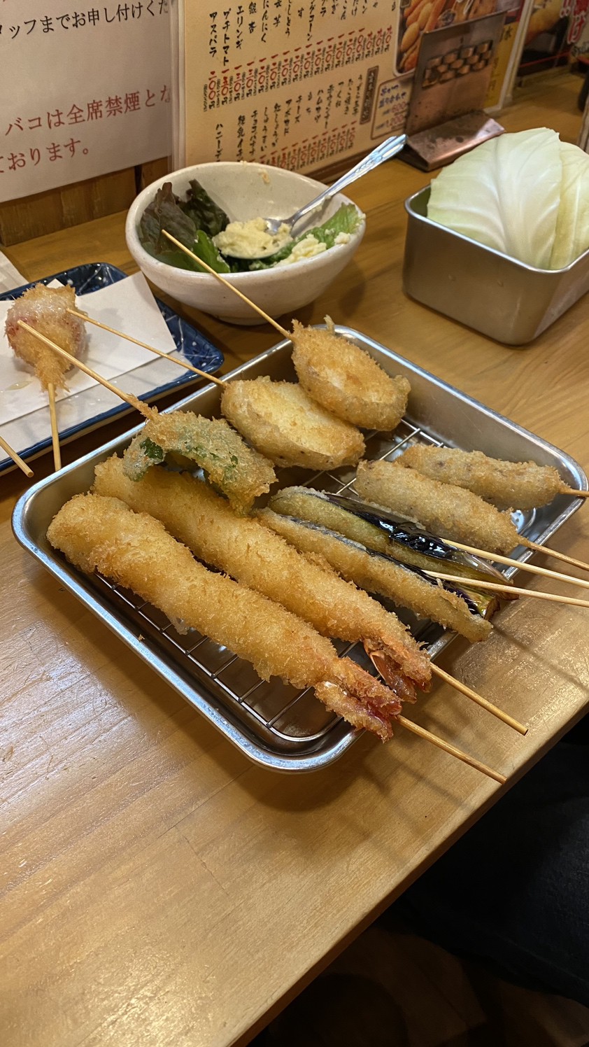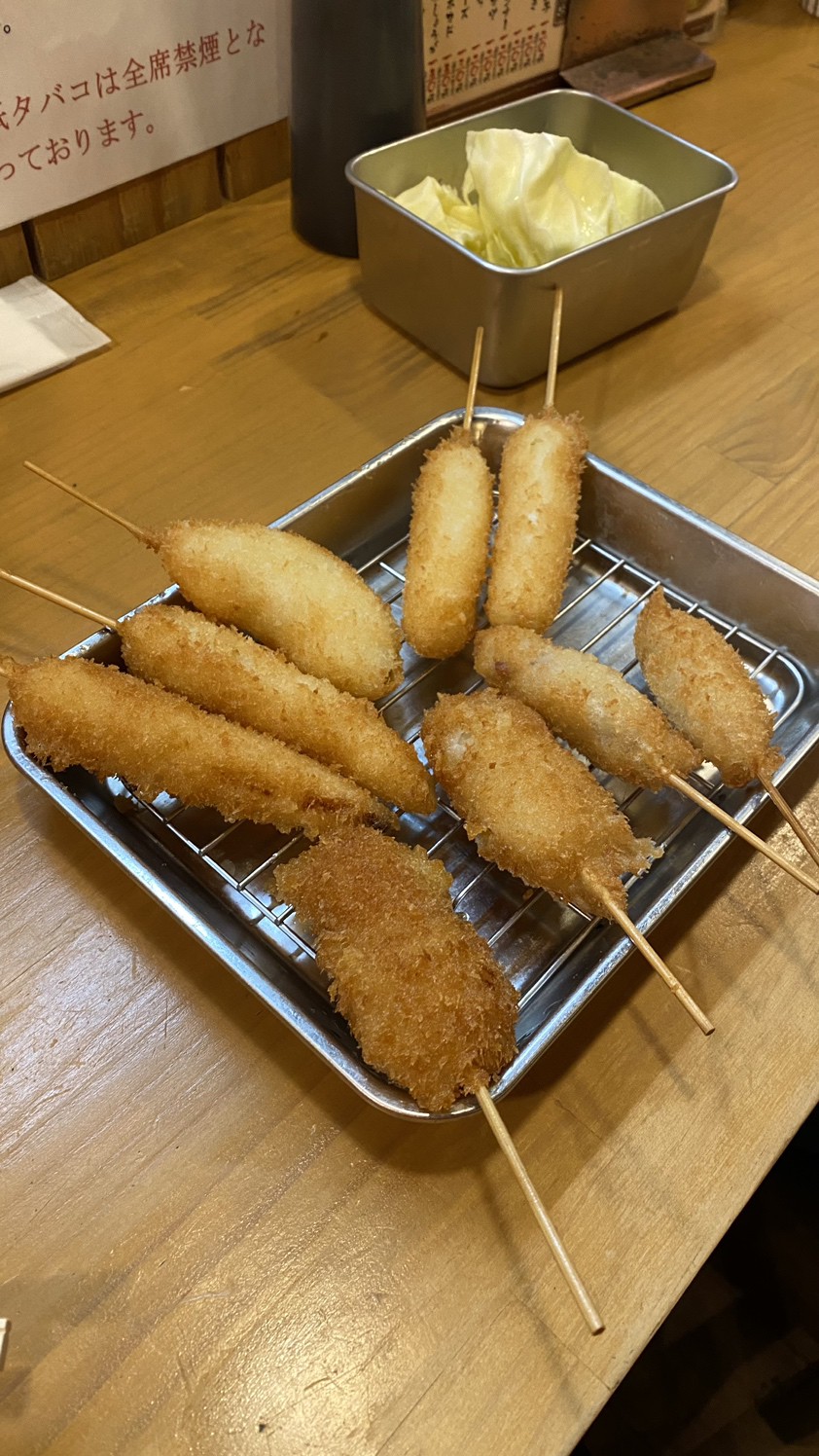 錦糸町駅北口からほど近くの【串揚げ 依知川】。店内は檜のカウンター、個室、と小じゃれた大人の雰囲気のお店です。メインメニューの串揚げを10種類の自家製ソースから好みに合わせて楽しめ、ゆっくりと落ち着いた大人の食事のひとときが過ごせます。