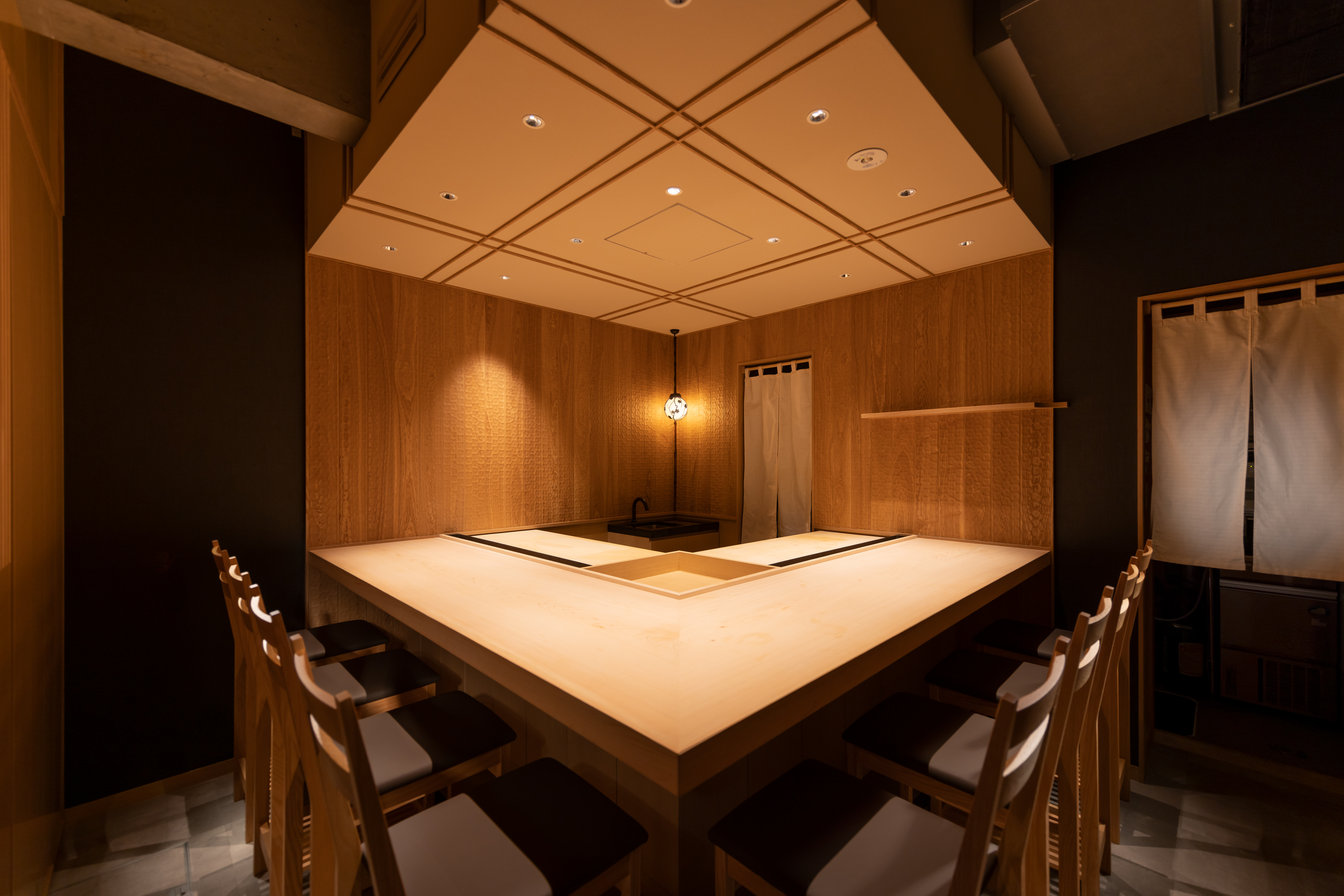 東京・学芸大学駅から商店街を抜けた住宅地にある隠れ家、【割烹すずき】。ご主人の鈴木好次さんは、寿司職人から始め独学で料理の幅を広げた料理人。柔らかく蒸したアワビの旨みと、少し苦みのある肝ソースとの組み合わせが秀逸な『アワビの酒蒸し 肝ソース和え』をはじめ、旬の食材を使いこなした独創的な日本料理の数々は『おまかせコース』で堪能できます。また「器は料理の服」という考えから、料理を盛る皿も骨董品や作家さんに特注した皿などを使います。さらに店内の天井や照明には、京の町家の部材を使用。ご主人の美意識とこだわりがあちこちに散りばめられた、鈴木流の割烹料理が楽しめるお店です。