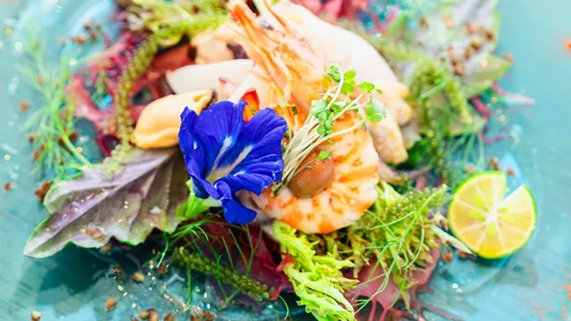 目の前はやんばるの美しい海。抜群のロケーションと厳選食材を使った料理が自慢の店