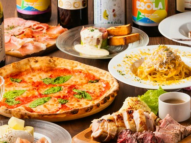 世界のワイン約70種類(赤・白・泡)飲み放題!自家製サングリアやサワー・ハイボールなど全部まとめて「時間無制限飲み放題」もございます。毎日店舗で生地から作るこだわりの自家製窯焼きピッツァは30種類をご用意。ワインに合わせたお肉料理・パスタ・本格イタリアンメニューも充実!誕生日・記念日・サプライズ・二次会利用・貸切パーティーなどもお任せください!