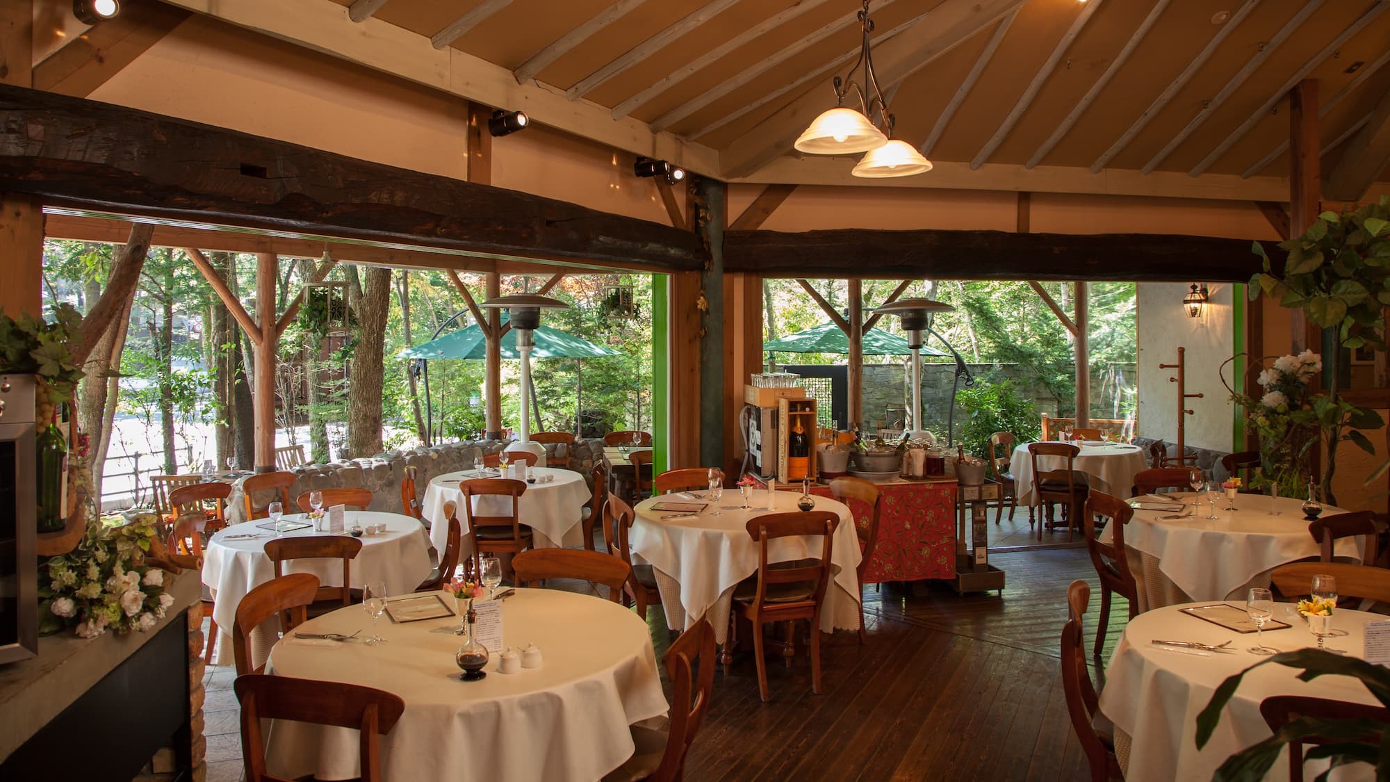 美しい風景を眺めながら、ゆったりとフランス料理を。雄大な浅間山を望むレンガ造りのゆったりとした空間。豊富なヴィンテージワインとともに、食材にこだわった繊細な技法のフレンチをお楽しみください。