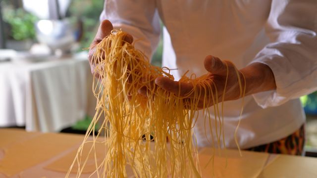 フィレンツェ出身のジョバンニシェフが腕を奮う、伝統的なトスカーナ料理をいただけます。サラミや生ハムの前菜、生クリームを使ったパスタ、そしてボリュームたっぷりのメインの肉料理など、本場フィレンツェさながらの味わいを堪能できます。