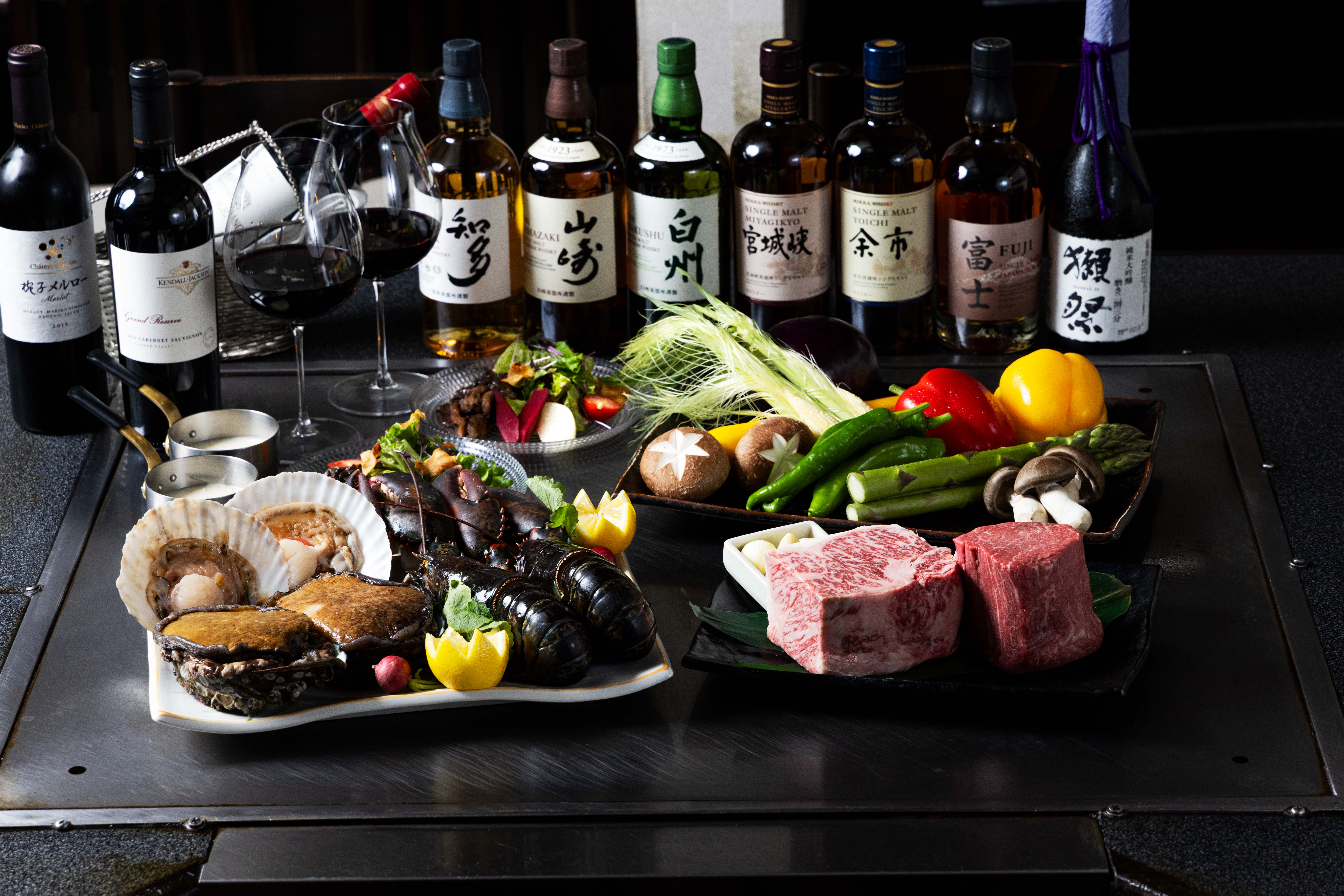 ステーキをメインにしながら、目白【旬香亭】オーナーシェフ齋藤元志郎のスペシャリテなどをコースに組み入れ、至高の食材を職人の技が料理へと昇華させていく様子を五感でお楽しみいただけます。東京駅舎や丸の内ビル群の景色はもちろん、目の前で職人が華麗に調理する手さばきを眺め、できたての旬食材を特等席で味わうのはまさに絶品。職人と会話を交わし、料理をお客様と組み立てていく距離の近さも、鉄板焼ならではの醍醐味。