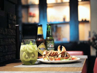 シェフこだわりの「オマール海老の料理」。各種エビ料理が中心のイタリア料理店