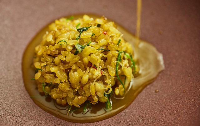 店主と和食出身の料理長が二人三脚で営む【食堂うちの】。かつて深夜食堂として間借り営業をしていた頃から、美食家の注目を集めている、カウンター10席のダイニングです。メニューは、18時と20時半の2部制で提供される『おまかせコース』。だしにこだわった和食の基本を大切にしながらも独自の感性が息づく、創作料理が登場します。特に〆の牛丼は、サイズを選べる点がうれしく、その味わいに魅了されるゲストも多い逸品です。料理はもちろん、種類豊富に揃う秀逸なセレクトのワイン、さらにはあたたかなもてなしまで、すべてが洗練されていて心地よいと評判。日々アップデートされる、旬の魅力に満ちた料理に出合えます。