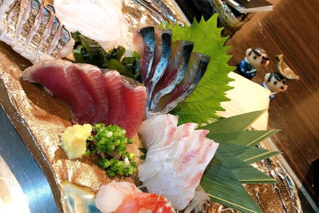 生け簀から揚げた新鮮な魚介料理や、地元蔵元の焼酎を豊富に取り揃える和食料理店