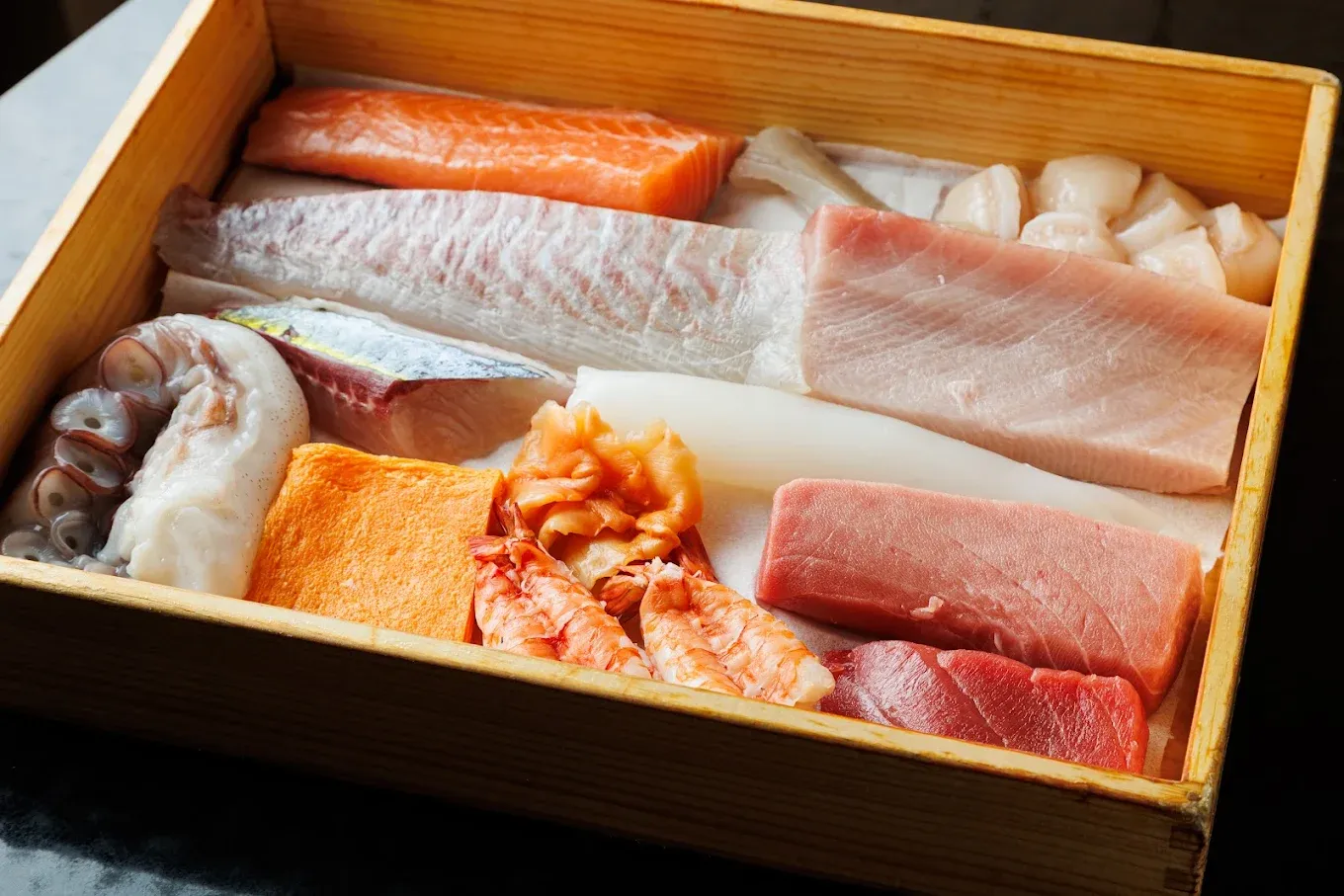 江戸前鮨の技法を大切に、旬の味覚をおまかせでご用意いたします。皆さまに心地よい時間をお過ごしいただけるよう、一つひとつ丁寧に仕込みを重ねております。