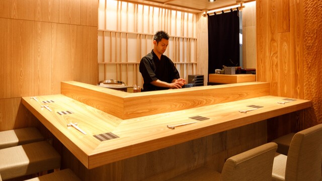 和モダンの上質な空間で、料理人が手がける美しい和食をご堪能あれ。 会社宴会はもちろん、お祝い事や接待・会食にもご利用いただけます。 ◆寛いでお過ごしいただける店内 美しい天然木の一枚板を使用したテーブルで上品な雰囲気のある個室。 人数に合わせてお席をご用意することもできます。貸切は最大45名様でご利用可能です。 ◆職人の技光る本格江戸前寿司 「塩や酢で締める」「蒸す・煮る」「タレに漬け込む」などの技法で毎日仕込むネタ。 ネタの捌き方、握りの硬さにまでこだわっています。 職人技をぜひ体感してみてください。 ◆ご宴会にもピッタリ!お得宴会コース 旬食材を使用した豪華絢爛なコースをご用意しております。 ◆厳選地酒を飲み比べ お料理に合うものを厳選した、こだわりの地酒。 旬食材の和食×日本酒を存分にお楽しみください。