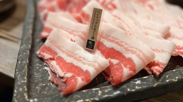 ブランド豚『イブ美豚』と宮崎牛を使用した。すき焼き、しゃぶしゃぶ、串カツ専門店