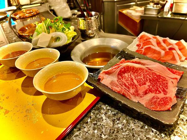 <新橋・銀座駅から徒歩5分>松坂牛のしゃぶしゃぶとすき焼きの2大看板を専用鍋で。料理と相性の良い日本酒とワインも豊富にご用意◎ 3時間飲み放題付きのコースのご用意あります。ごゆっくりお過ごし下さい。会食や接待は勿論、大切なヒトとのお食事に、是非。ご予約はネット予約とお電話も可能です。ソファテーブルや窓際のお席は人気ですので、事前のご予約がお勧めです。